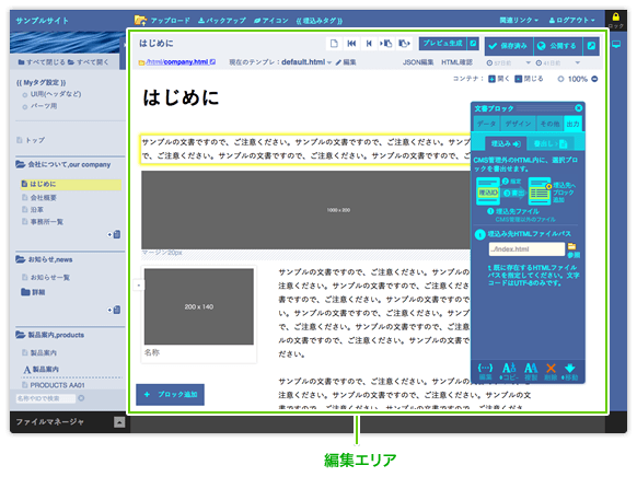 ページ編集では、主に以下の操作を行います。