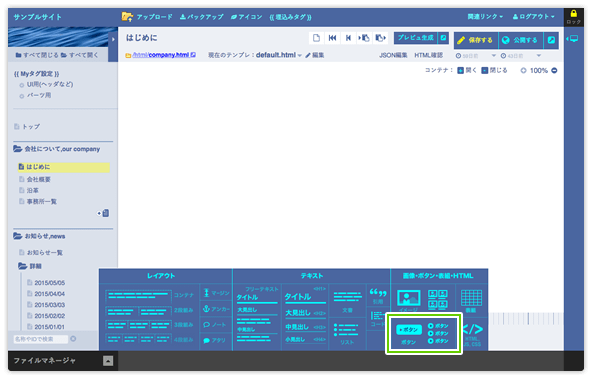 ボタンをクリックすると、 ボタン編集画面が表示ます。