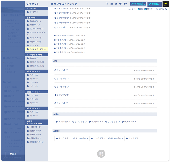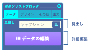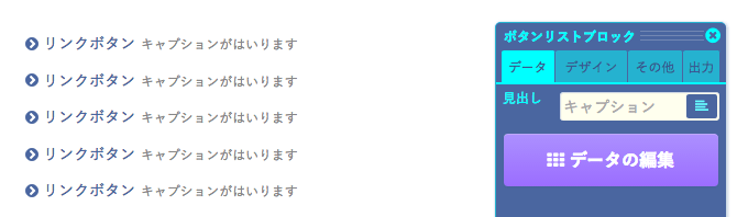 ボタンのリストを表示するブロックです。 入力したデータはボタンのリストに変換されて公開されます。