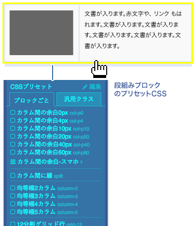 段組みカラムの幅の調整は、プリセットCSSをうまく指定すれば、思い通りの幅に設定できます。