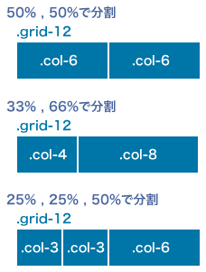 | 12分割グリッド | 均等幅を指定しない限り、カラム内のコンテンツにおおじて、カラムの幅は自動で設定されますが、12分割グリッドを利用すれば、カラムの各比率を指定するこができます。 その場合は、このプリセットを選択したうえで、次に段組みセルを選択して、比率のプリセットを選択してください。 |