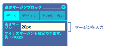 数値と入力すると、その分の高さマージンを開ける、シンプルな役割のブロックです。