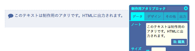 このブロックは、ページには公開されないブロックなので、ページ制作に関しての、メモや申し送りなど、制作用に汎用的につかえるブロックです。