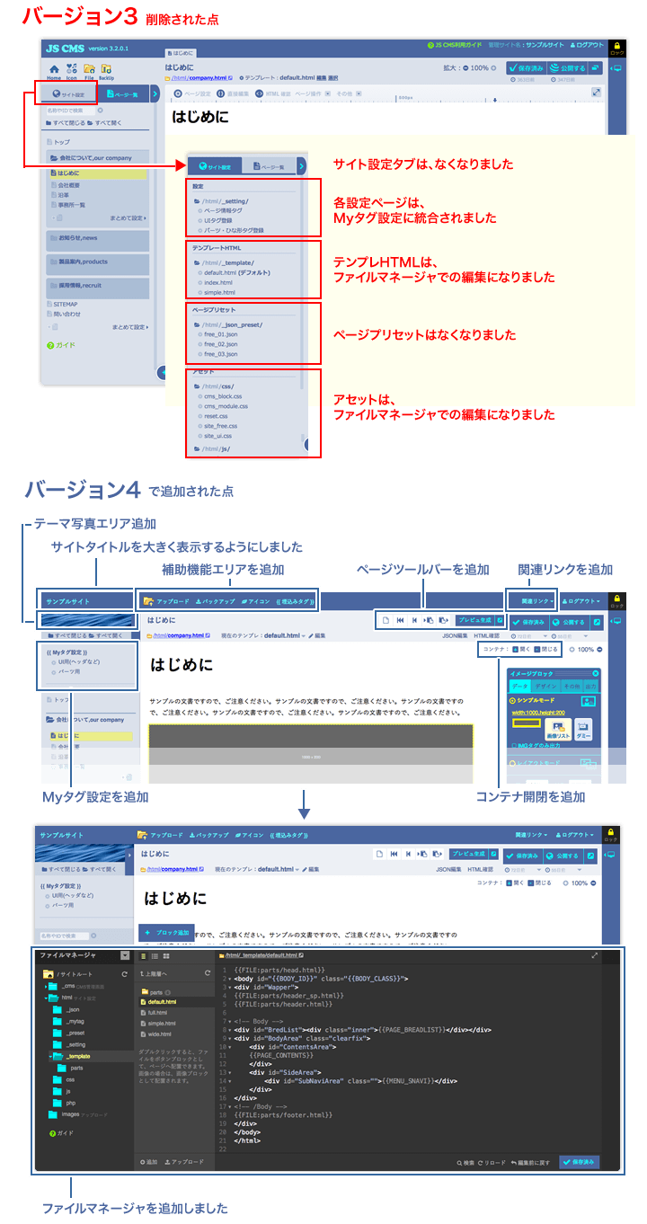 - ファイルマネージャ機能追加。それにともない、管理画面レイアウト調整
