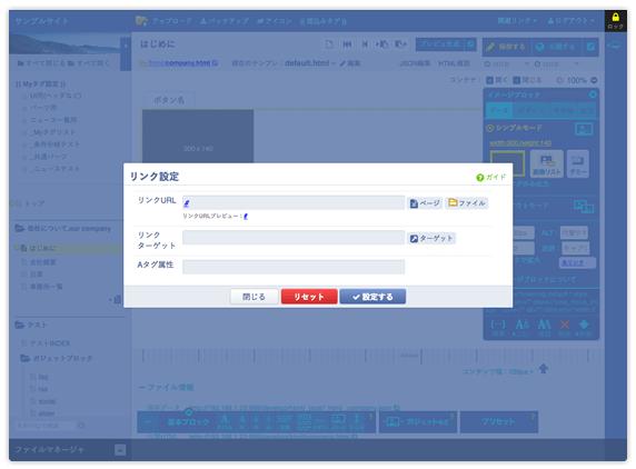 | リンクテキスト | ラベル名を入力します。HTMLタグも利用できます。 |